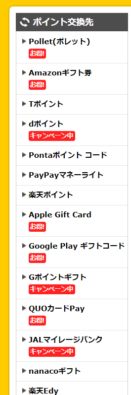 ポイントは交換する前に、その交換先だといくら分に交換されるのかは事前にチェックするようにしましょう。